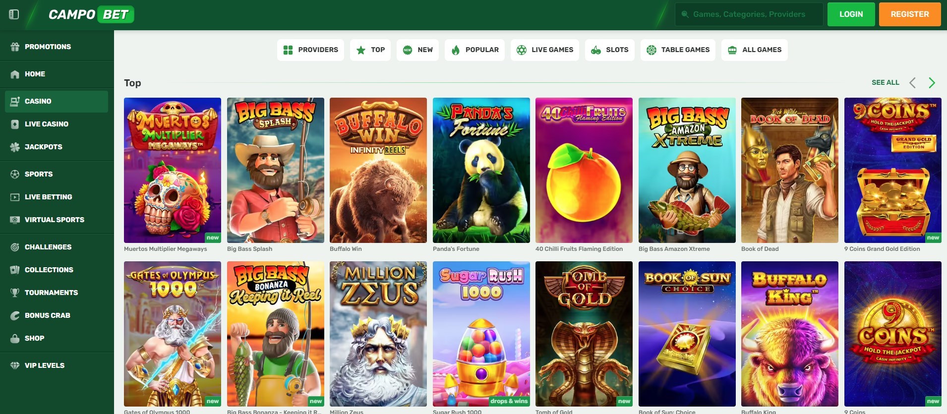 CampoBet cuenta con una interfaz moderna y atractiva que se maneja con facilidad, incluso si es la primera vez que la usas. Las apuestas deportivas están bien organizadas con categorías bien diferenciadas, actualizaciones en tiempo real y cuotas que cargan al instante. Los apostantes pueden acceder a las estadísticas en vivo y a opciones de seguimiento visuales para supervisar los juegos, lo que crea una experiencia de apuestas envolvente.